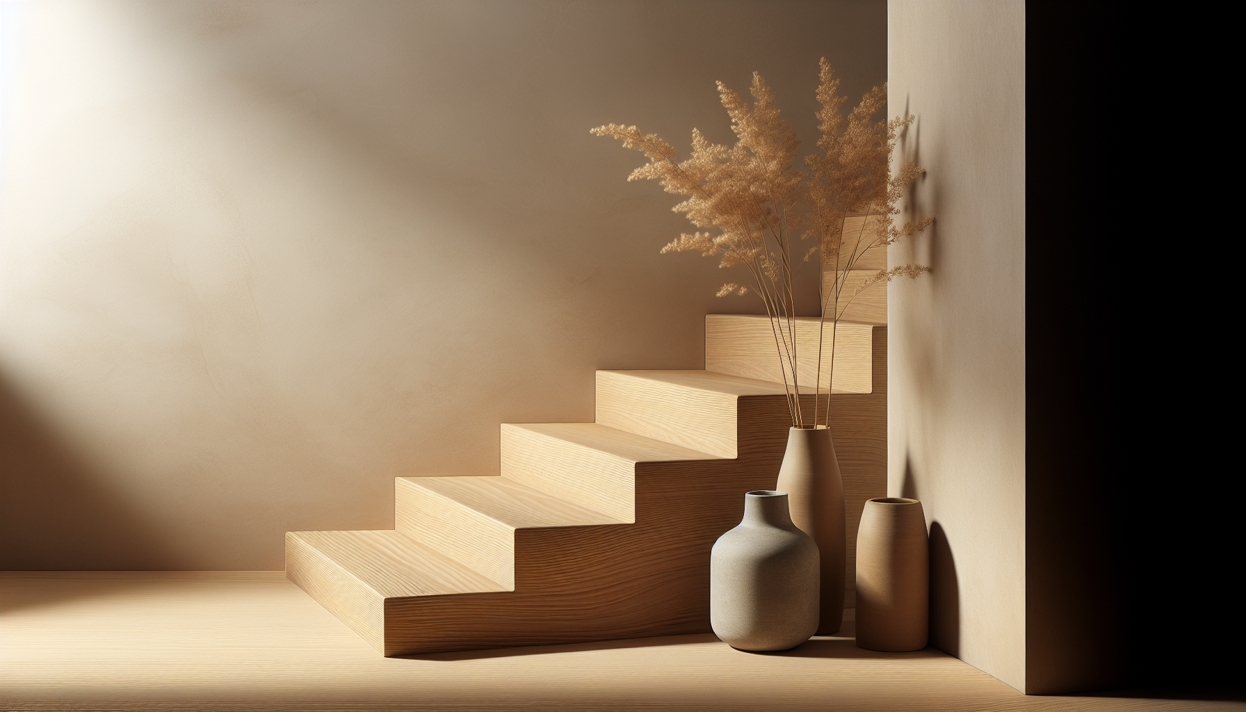 Consider open risers or thin steel balustrades combined with wooden treads to keep sightlines open. Integrate lighting into the stair design to emphasize gradual transitions.